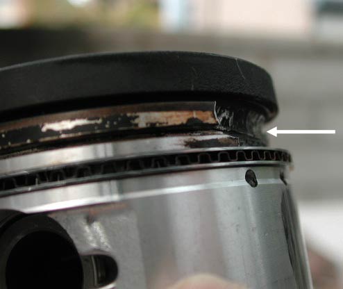 7.エンジンを再度おろして分解して見たら、1つのピストンが上の写真のような状態になっていた。