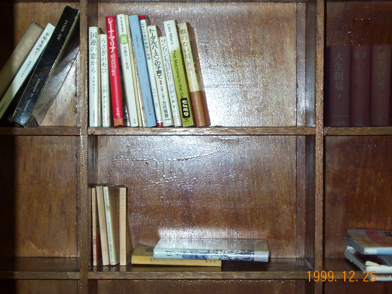ところが、予想外、人が入ってたのです。40歳くらいのスーツ姿の女性が本を物色しておりました。さすがにその瞬間を写真におさめるにはその方の許可が必要でしょうから、待ちました。ところが、入れ替わりにまた、今度は10代の若者が2名、こちらは初めてみるふうだったので興味本位だったのでしょう、すぐいくなりました。しかし、連続して人が立ち寄るなんて。。。