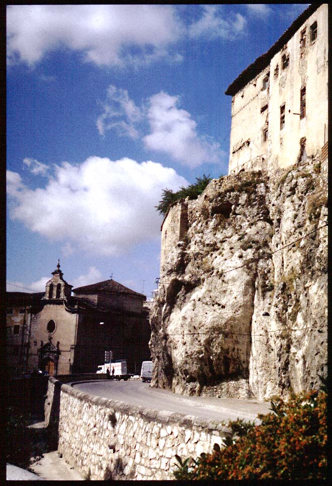 The building on the rock is called "Casas Colgadas"