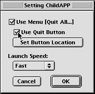 ●[Quit All...]メニューとQuitボタンを「使用する」に設定してChildAPPを作成。そして、