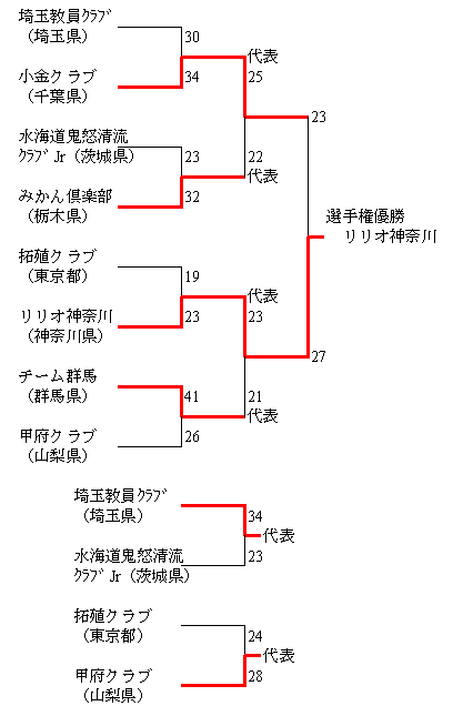埼玉教員クラブ 34 (14- 8, 20-15) 23 水海道鬼怒清流倶楽部Jr