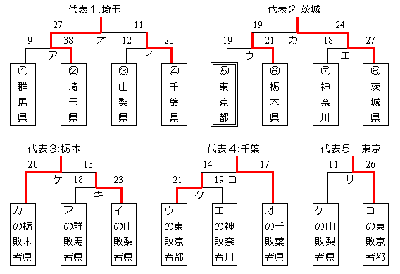 東京都 31 (13- 4, 18- 2) 6 群馬県