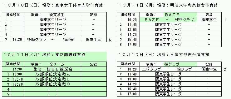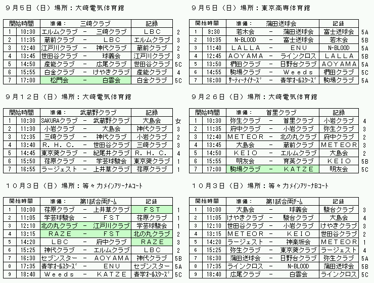 | 1 | 10:00- | 4部6位−5部3位 駿台クラブ−N-BLOOD |