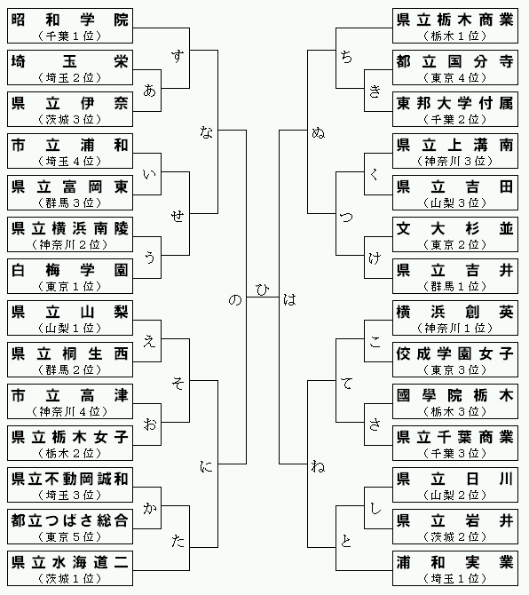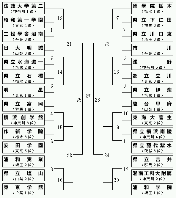 男子 優勝:法政大学第二高等学校 準優勝:茨城県立伊奈高等学校 3位:浦和学院高等学校、横浜創学館高等学校