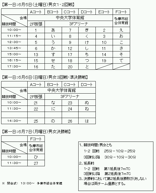 日 程(当初掲載日程から若干の変更あり) 男子トーナメント表 女子トーナメント表