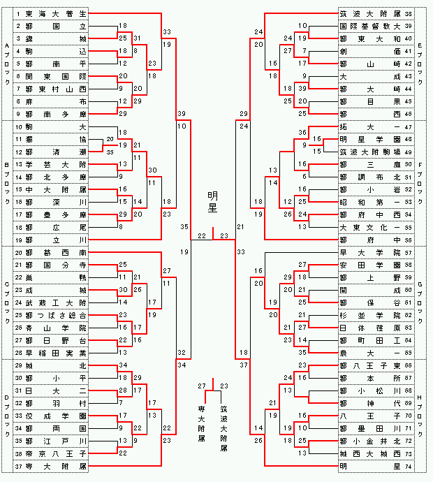男子 優勝;明星 2位;東海大菅生 3位;専大附属 4位;筑波大附属