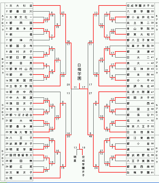 女子 優勝;白梅学園 2位;文大杉並 3位;佼成学園女子 4位;明星