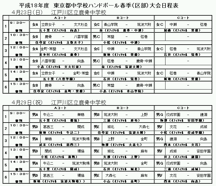 平成18年度 東京都中学校ハンドボール春季(区部)大会