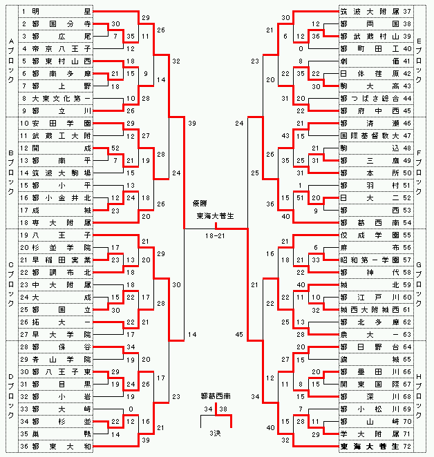 男子勝ち上がり 1位:東海大菅生 2位:明星 3位:都葛西南 4位:八王子 以上関東大会出場権獲得