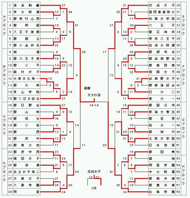 女子勝ち上がり 1位:文大杉並 2位:白梅学園 3位:佼成女子 4位:明星 5位:立教女学院 以上関東大会出場権獲得