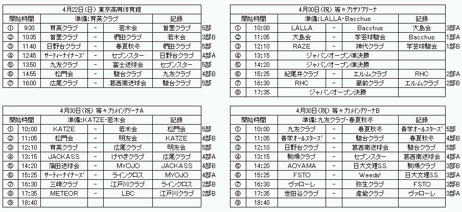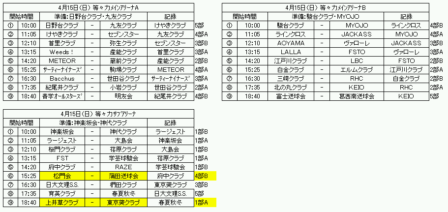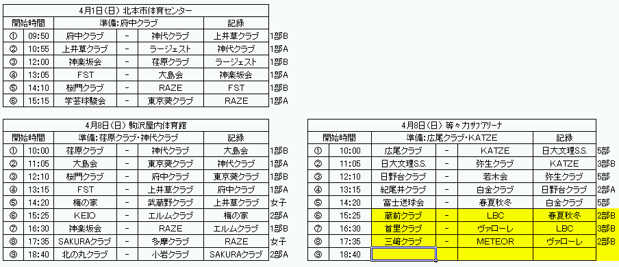 2007年度(平成19年度)東京都クラブリーグ戦日程 -1-(4/1-4/30)