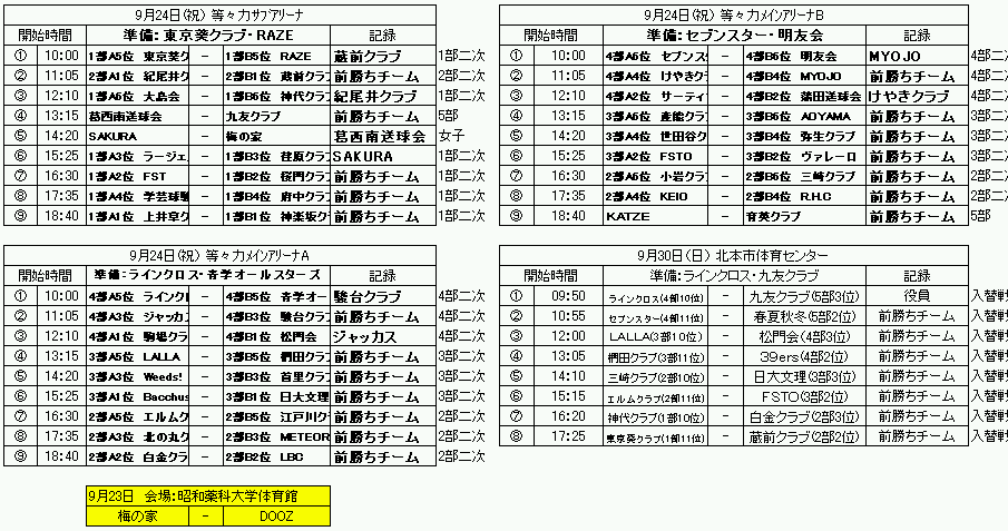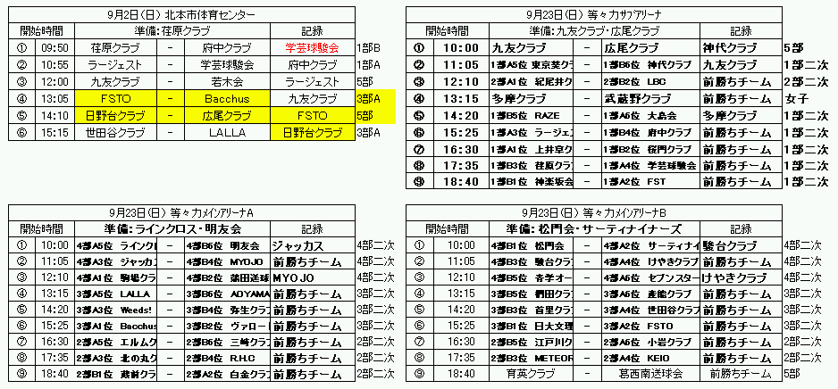 2007年度(平成19年度)東京都クラブリーグ戦日程