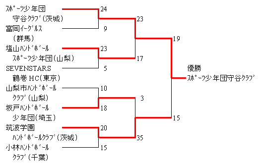スポーツ少年団守谷クラブ 23 (11- 8, 12- 9) 17 塩山ハンドボールスポーツ少年団