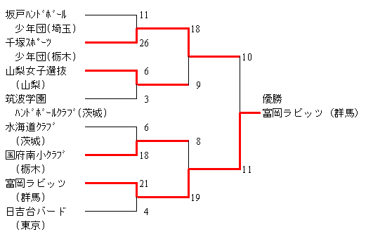 坂戸ハンドボール少年団 18 (10- 4, 8- 6) 10 山梨市ハンドボールスポーツ少年団