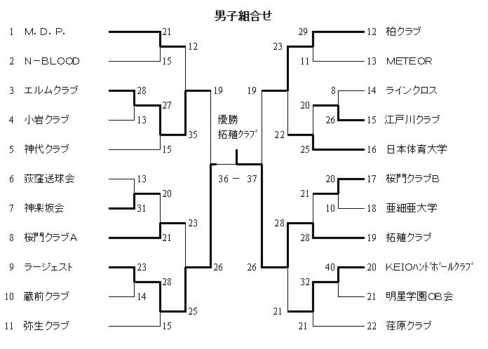 拓殖クラブ 28 (12- 7, 16-14) 21 桜門クラブB