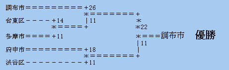 準決勝 ○ 調布市 26 (12- 6, 14- 5) 11 台東区 ●