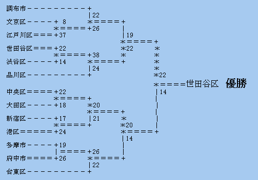 2回戦 ○世田谷区 38 (14-17, 24- 7) 24 品川区 ●
