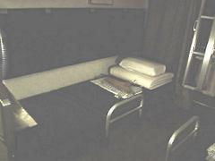 コレが寝台っす。 シートが普通の通勤電車のシートと同じような材質なのがミソ(笑)。ある意味で、寝心地抜群です(爆)。 @の乗車したのは、寝台特急「あさかぜ」のB寝台(下段)。……本当は「サンライズ」の個室に乗りたかったのだが、寝台列車での帰京を広島行きの直前に決定したので、@がみどりの窓口に行った時には、既にあいにく満席で取れませんでした(ToT)。 |