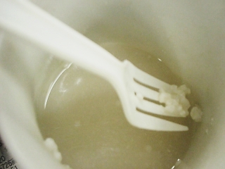 | 寒い季節になりましたが、みなさん風邪などひかずに元気にお過ごしでしょうか?@は甘酒など飲んであったかくしてますからとても元気です♪……なんちゃって。 という訳で、インスタント甘酒です。缶入り甘酒も有名なので、そっちを飲んだ人も多いかな?。そういえば、缶入り汁粉なんてのもあったっけな(^-^;)……。<え?飲んでみろってか(^-^;)?? フリーズドライなので、形状は高野豆腐に似てます(笑)。とてもモロいですけどね。この形状は、最近、卵スープやお粥の素にもよく見受けられるので、ピンとくる方もいるでせう。出来上がりは、右の写真の通りです。半生の米粒(フォークにすくわれている)がやや気になるとはいえ、お湯での戻し具合も完璧で、酒粕オンリーではなく麹から作ったらしいことが想像できます。 味は、それなりにコクもあってなかなかですが、甘味料を使っているらしく、とにかく激甘です。もうちょっと甘さ控えめでも良かったですな(^-^;)。 | |