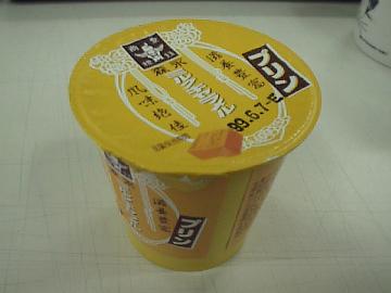 ってな訳で黄色い箱でお馴染みの、森永ミルクキャラメルのプリンが登場しました。形状は写真の通り、キャラメル色のプリンです。カフェオレのゼリーのようにも見えますが、味はやっぱりプリンです(^-^;)。やや、こうばしい感じがしますので、それで「ああ、これはキャラメルの味なんだ〜」と認識できる程度の味です。只のプリンにしてはこってりした感じかな。