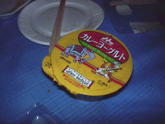 「まじかよ(^-^;)……」。これは是非、誰かに食わせねば( ̄ー ̄)。 と、考えを巡らせていた平成10年3月末日。課で花見をしようということになった(於:新宿中央公園)。食料は当然、幹事連中によるコンビニ買い出しだ。 グリコの季節限定「れんげのはちみつアーモンドチョコ」、コンビニ名物おにぎり、そして、通りすがりのピザ屋の兄ちゃんとっ捕まえてピザを注文。そして、「デザートだよん♪」と言っておもむろに配りだしたのはコレだった(爆)。勇気ある@が生贄になったことは言うまでもないであろう。 さて、問題の食感ですが、「給食の時間に食パンに塗って食べたい」ってゆー感じです(^-^;)。匂いがちゃんとカレー(レトルト風)、なのが笑えます。エスニック料理で「これは本場で有名な……」と言われたらそーいうもんかも知んない、と変に納得させられる様な存在ですな。予想よりは不味くないですが、あくまでも「珍味」ってことで……(^-^;)。 |