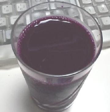 | ヤクルトおばちゃんの販売で購入しました、さつまいものジュースです(^-^;)。ムラサキイモなので、こんな色になってます。製法については謎なんですが、生芋絞りなのかな?ホクホクというかんじは殆どありません。すこしだけサラサラするかな? 味の方も、ホクホクのさつまいもにはほど遠いです。柑橘果汁で味を整えてあるらしいので、無理も無いでしょう┐(´ヘ`)┌。でも、ちゃんとサツマ。蒸かしたサツマイモの皮の部分がほんのり香る味がするのですが、その味がハーブみたいな感じでイイカンジです(^^)。 ムラサキイモなので、ど紫色してますが、色素は今流行のアントシアニンでしょう。ブルーベリーに入ってるというアレです。おかげで、翌日、眼がすっきりしました(^^)。いいですよ、コレ(^^)。 |