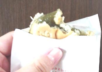 | 新・職場のお姐様の佐渡旅行のおみやげです。 なんと、「わかめモナカ」だ!なお、わかめには「若女」という字が当ててありました。 おいおい、いくらなんだってこんなんありかよΣ( ̄□ ̄;)!、と思いましたが、味の方はキタイを裏切り結構マトモ(^-^;)。生臭いというか、青臭いというか、でもそれが悪いフレーバーじゃないのね。なんと言うか、ほのかな青のり風味、と言うのが一番近いかも(^-^;)。さすがに同じ海草だけあるな。やや、京菓子に似た上品な趣あり、です。 しかし、インパクトあるのは、なんてったって、ワカメ色の餡(-_-;)。ウグイス餡とも違う、とてもビミョーな色合いが食欲をそそるというか削ぐというかどっちかよく分からない代物です。 ちなみに、この時一緒にもらったのは、日本酒ゼリーの入ったチョコレートでした。そう云えば、新潟県というのは酒の産地なのだな(^^)。 |