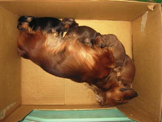 ちびキャン軍団が誕生して今日で9日目。 ずっとベビーのそばから離れずに子育てをしていた キャンディーも最近は子育てに疲れた?のか 産箱から出てくつろいでいる時間が増えてきた。 私達が産箱を覗いても唸ることもなくなったし、 サークルから出てきて私達に愛想を振りまくようになってきた。 出産からずっと私達に愛想を振りまくことがなかったので ちょっと嬉しい。(笑) ちびキャン軍団も順調に体重が増えすくすく育っている。 1号 260g → 425g 2号 210g → 350g 3号 210g → 345g 4号 215g → 415g なかでも4号はどんどん大きくなって1号に迫る勢いだ。 一時キャンディーの食欲が落ちた時期があり心配したが 最近は食欲も戻ってきたようで一安心だ。 |
