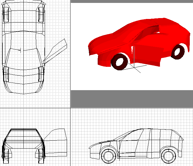 一応みようみまねで、クルマの原型を作成。(ミラージュ 3ドア のつもり)工程100分の1ほど完成ですか。