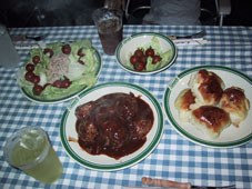昼間焼いたパンに合う料理と言うことで、煮込みハンバーグを選択。疲れた体に甘めのこってりソースで食が進みました。