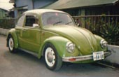 2台目のワーゲンビートル。初代が事故で大破したためやむなくこれにしました。センターラインの1円玉ホイールをつけて、外観的にはカッコよかったのですが、やはり空冷リヤエンジンに無理やりエアコン付けたもんだから、しょっちゅうオーバーヒートしてしまって、どうしようもなかったです。 |
