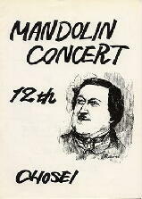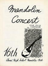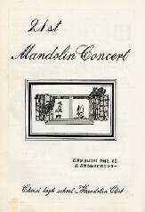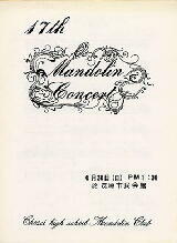 第13回 1977.06.26 マンドリニストの群れ(ブラッコ) ミレーナ(マチョッキ) メリアの平原に立ちて(マネンテ) ガボット(アマデイ) 水 車(テンセン) マンドリンコンチェルト (ヴィヴァルディ) バラ色のメヌエット エーゲ海の真珠 涙のトッカータ 幸せの黄色いリボン 華燭の祭典 (マネンテ) 大幻想曲「耶馬台」 (鈴木静一) |