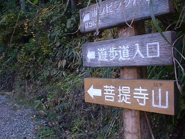 登り 石油の里駐車場(菩提寺山登山コース) −− 50分 −− 菩提寺山山頂