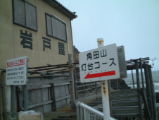 | 15:50 角田浜着 | 砂浜で汚れた長靴を洗う | 灯台コース登山口 を眺める |