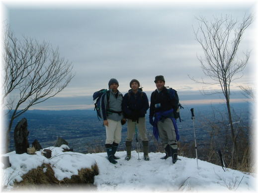 | 前日の雪で新雪も少しあり、凍結も心配の無い条件の良い 登山日よりと成った。登山靴とアイゼンも用意したが 今日は新雪の影響を考えスパイク長靴で登山した。 木立の葉が落ち冬ならではの眺めを満喫 しながら登る事が出来た。山頂は360度の眺望で良かったが 狭く風も強いのでゆっくり休憩出来なかった。 休憩の為の重い装備は三脚とカメラ以外は使用すること無く て降りてまった。帰りは 観音様にお参りし、水沢うどん食べ、榛名湖で ワカサギ釣りの初体験し締めは伊香保温泉入浴で締めました。 |