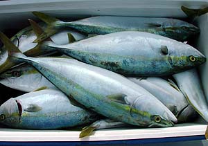 [釣りのポイント] 棚は底いっぱいから、 @糸が前に出たとき リール中速5回転→止める、の繰り返し [釣況] ・釣り客4名 ・船中、40本前後 ・釣果 頭25本でおれっち! [感想] しかし痛恨のワラサバラシもありやんした。タモにフックが引っかかりうまくタモの中に入らず。・・・グヤジィ〜 |