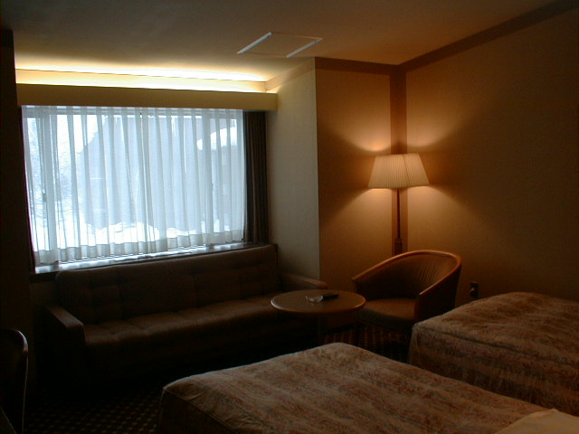 札幌には16時59分に到着しました。札幌駅からは地下鉄南北線で中島公園というところまで行き、そこから徒歩3分くらいの「アートホテルズ札幌」というところに宿泊しました。このホテルは25階建てで3年くらい前に出来たとても新しいホテルです。部屋はビジネスホテルにしてはとても広く、ベッドルーム以外に小さなソファがあって、そこで寝ながらでもテレビが見れるようになっていました。でも、このホテルの最大の特徴は何といっても、温泉がついていることでしょう。これは各部屋にあるのではなく、3階に大浴場がついています。設備は洗い場が30人分くらいあって、さらにジャグジーやサウナがついています。(フライツアイトの温泉とほぼ同じ)