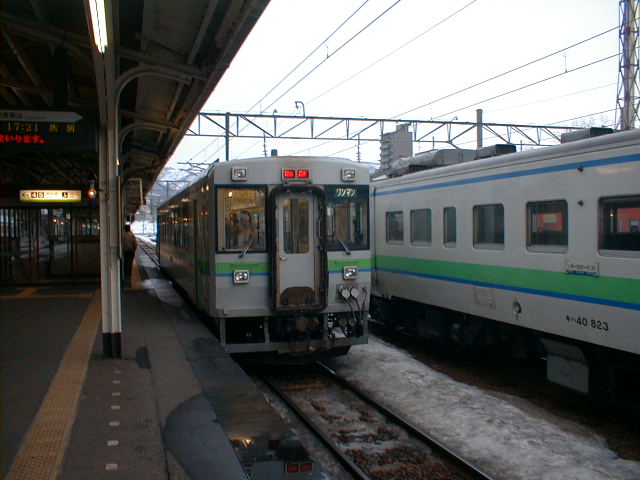 地下鉄の自衛隊前駅です。 札幌駅に停車中のスキーエキスプレスです。 普通の通勤電車です。