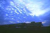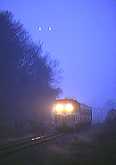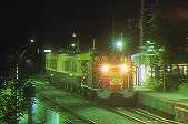 DD13のヘッドライトが滲む幻想的な世界。 夕方の青紫色の光線が良い雰囲気でした。 |