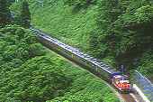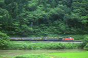 長野所のお座敷「浪漫」を従え飯山線を行く。 若干曇っていましたが緑がとても綺麗でした。 小海線のイベント列車「M.Gトレイン」を牽引。 |