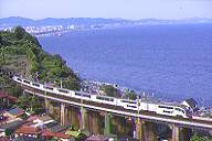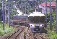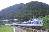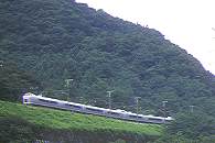 特急「東海」に運用される静シスの373系。 海の青とみかん山の緑が美しい名所です。 曲線で車体を傾ける振子車の元祖381系。 |