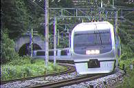 車体を傾けカーブに進入する振子車E351系。 E351スーパーあずさ。通過音が独特です。 |