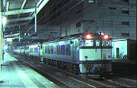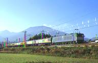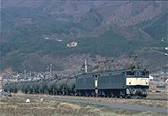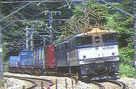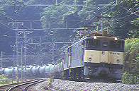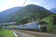 | EF64---奥羽本線の福島-米沢間の板谷峠用として製造された機関車ですが、 この区間が交流電化になった為、現在は中央本線、篠ノ井線等で使用されて います。勾配線区向けの装備として 、降坂時の抑速用に発電ブレーキを装備 しています。旧型客車用にEG(電気暖房用発電機)を搭載 した車両もあります。 |
