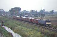光のあたりぐわいがとても奇麗でした。 専用貨物列車を牽引する一般型の重連。 |