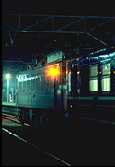 夜のEF81、電暖表示灯が輝いていた。 雪まみれで長岡駅に到着した「きたぐに」 |