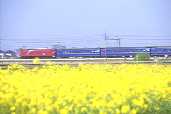 黄色い菜の花が眩しい春の東北本線。