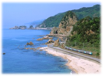 ![]() 名勝「笹川流れ」を行く特急「いなほ」 羽越本線 今川〜越後寒川 |