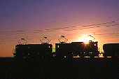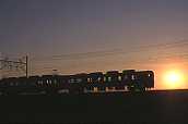 利根川の大築堤を行く急行りょうもう号。 この日は風が強く、とても寒い一日でした。 沈みゆく太陽と、シルエットの8000系。 |