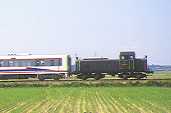 キハ300(元国鉄キハ30)関東平野を快走。 鉄道の日イベントで運転「動く鉄道教室号」 同じ列車を撮影、DD502のサイドビューです。 |