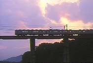 貨車の形が独特なのでシルエットも面白いです。 紫色の空を背に2000系(元東急7000系)が走る。 |